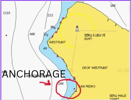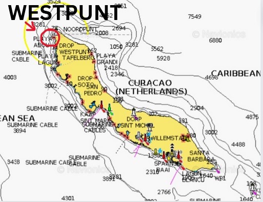 Closest over night stay spot is in the Playa Piskadi, a low key fisherman beach filled with sea turtles in the Westpunt Baai. You’ll find the best spot to anchor in the Southernmost point of the Bay in front of the beach. Northern in the bay you go, you might find good anchoring spots, but also yourself avoiding little fishing boats, mooring balls, and patches of coral. Easy entry. Curacao is an island on a slope / wall. The depth drops fast on the edge. Once past the wall contour line stay on the sandy areas.