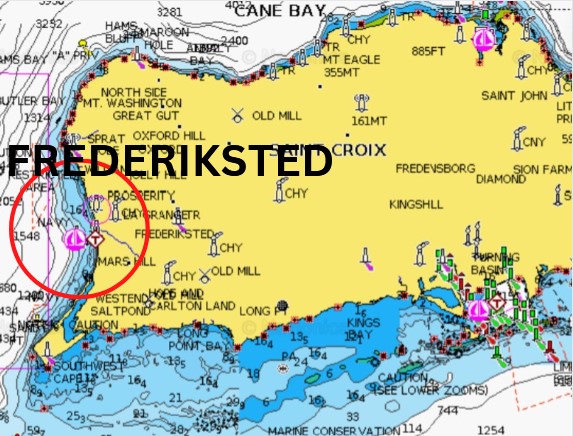 Due various technical aka boat issues we found it better to approach the islands West side without needing to tackle and navigate around the reef structure. In the end we were happy that the engine, anchor windlass and VHF failed and brought us to approach the town of Frederiksted instead!