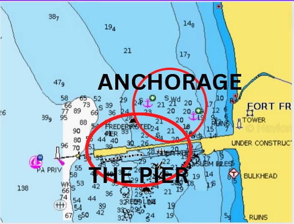 Closest over night stay spot is North of the pier, right in front of the Fort Frederik and Frederiksted beach.